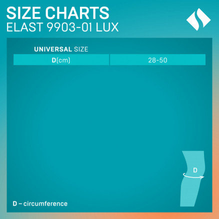 Die Schiene der Serie LUX besteht aus weichem, atmungsaktivem und sehr flexiblem Neopren, das außen mit Klettverschluss und innen mit Baumwollgewebe laminiert ist. Sie hat ein universelles Design, das die Verwendung einer Bandage für verschiedene Größen des Kniegelenks ermöglicht, mit einem Bereich von 28 bis 50 cm. Die Struktur ist in separat verstellbare Bereiche oberhalb und unterhalb des Kniegelenks unterteilt. Die Verwendung von Klettverschlüssen ermöglicht die einfache Einstellung des erforderlichen Kompressionsverhältnisses in jedem Bereich und die Fixierung der Bandage in jeder der verfügbaren Größen.